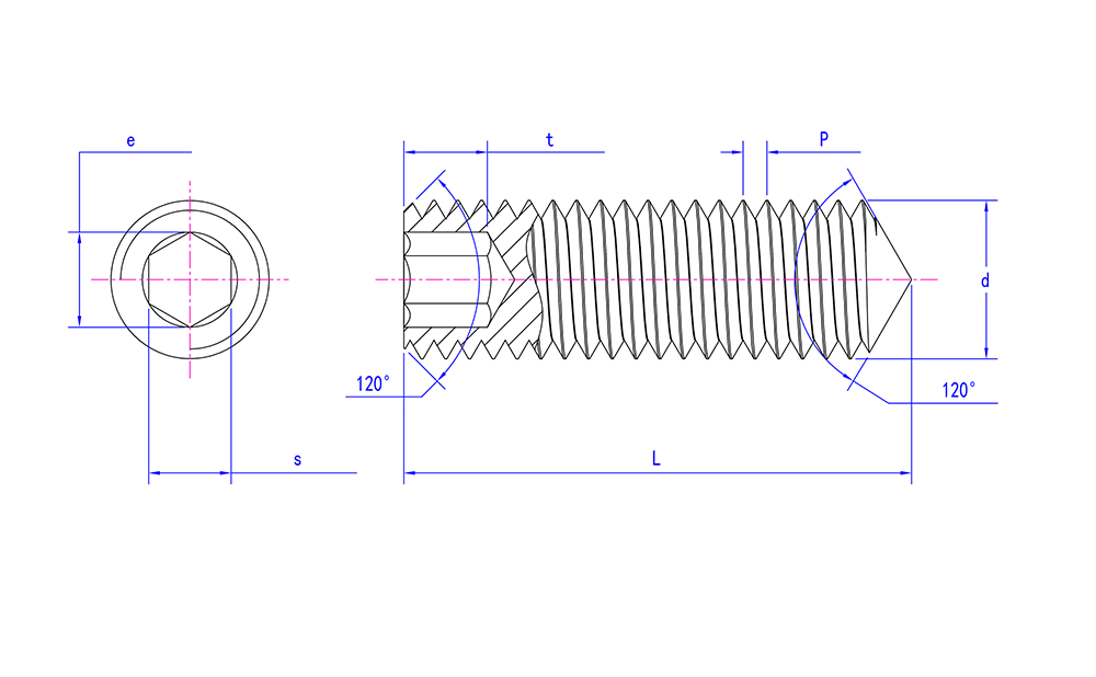 DIN914 ステンレス鋼のコーンポイント付き六角穴付き止めねじ
